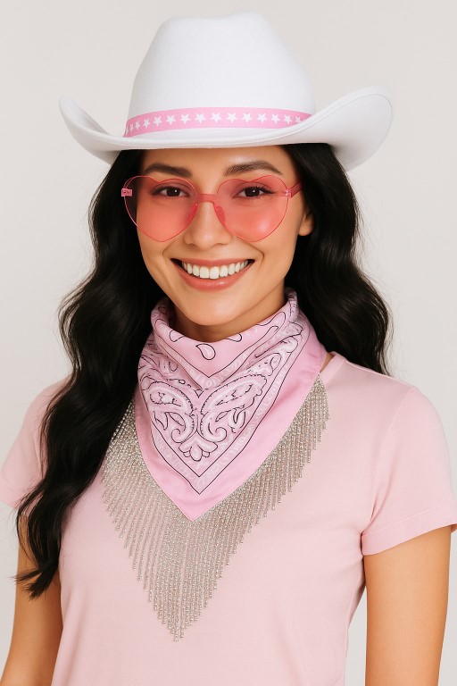 ++พร้อมส่ง++เซ็ทหมวก+แว่น+ผ้าพันคอสีชมพู ผ้าพันคอแนวคาวบอยบาร์บี้ ผ้าพันคอคาวบอย